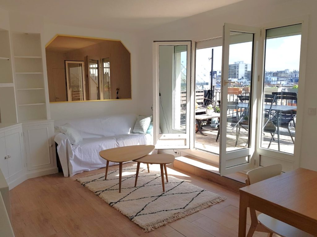 Rue Croix Nivert, laissez-vous séduire par ce studio lumineux de 27 m² meublé, offrant un grand séjour avec cuisine ouverte, une salle de bain avec WC, et le véritable atout de ce bien : deux terrasses aux deux extrémités de l’appartement.